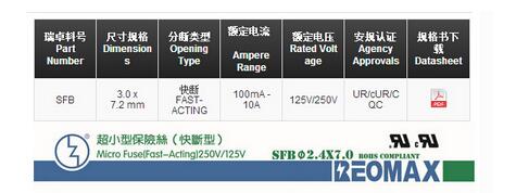 產(chǎn)品名稱(chēng): 電阻式保險(xiǎn)絲SFB 3.0*7.2mm 環(huán)氧涂層(快斷型)