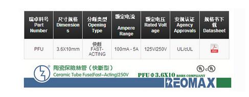產(chǎn)品名稱: PFU 3.6*10 陶瓷快斷保險絲