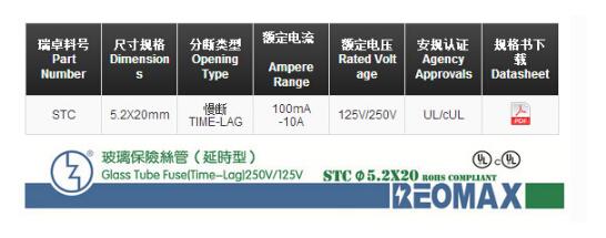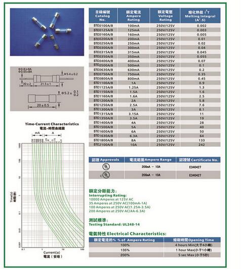 產(chǎn)品名稱: STC 5.2*20 玻璃慢斷保險絲
