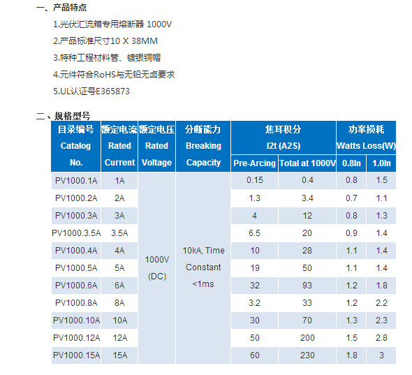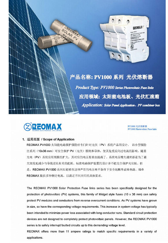 產(chǎn)品名稱: 1000Vdc REOMAX光伏熔斷器10X38mm PV1000
