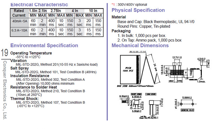 產(chǎn)品名稱: CONQUER Micro Fuse 微小型保險絲認證齊全