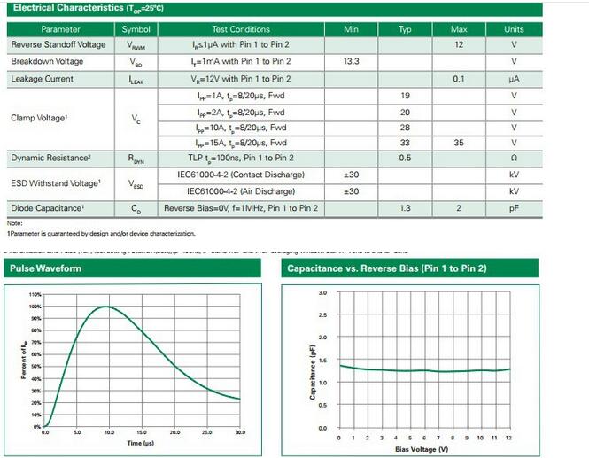 產(chǎn)品名稱: SP1004 Series 5pF 8kV bidirectional TVS Array