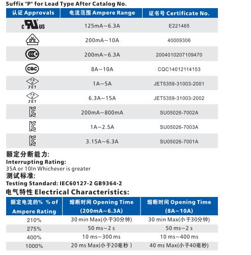 產(chǎn)品名稱: 5J Φ5.2×20 玻璃快斷保險絲 多國認(rèn)證