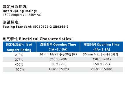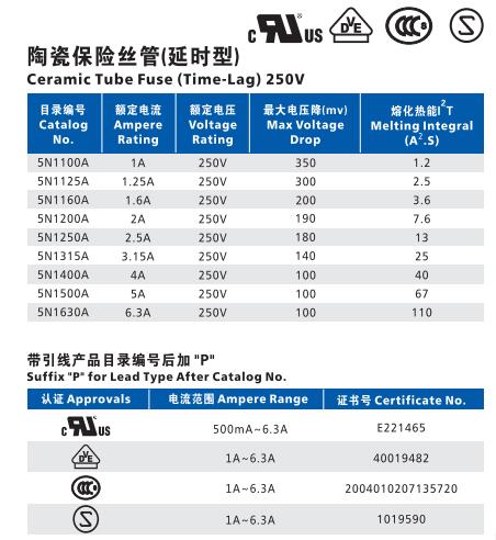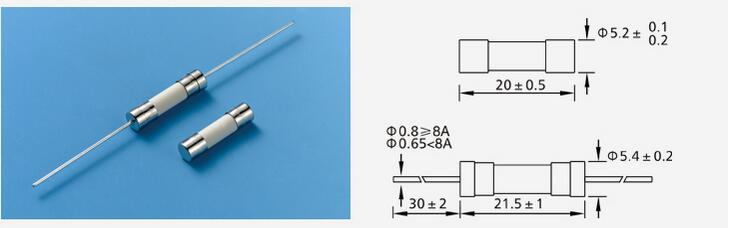 產品名稱: 5N Φ5.2×20 高分斷陶瓷慢斷保險絲