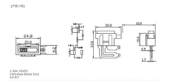 產(chǎn)品名稱: H3-34(汽車保險(xiǎn)絲座) 保險(xiǎn)絲座(引線式)|汽車保險(xiǎn)絲座H(引線式)|保險(xiǎn)絲盒(引線式)