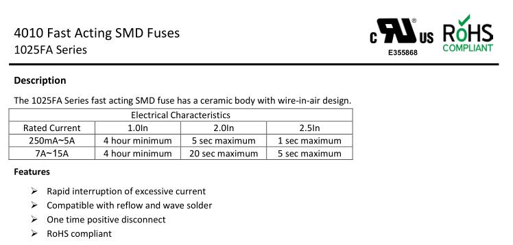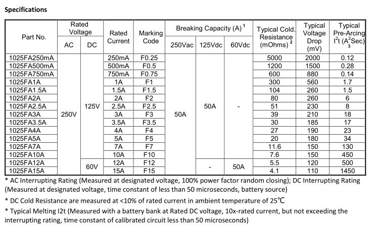 產(chǎn)品名稱: 1025FA 250mA-15A 250VAC125VDC