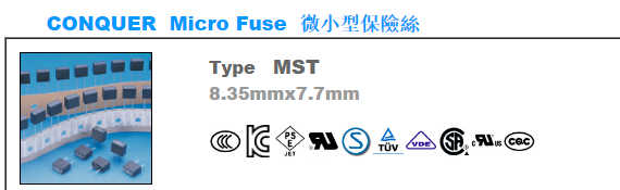 產(chǎn)品名稱: CONQUER Micro Fuse 微小型保險絲