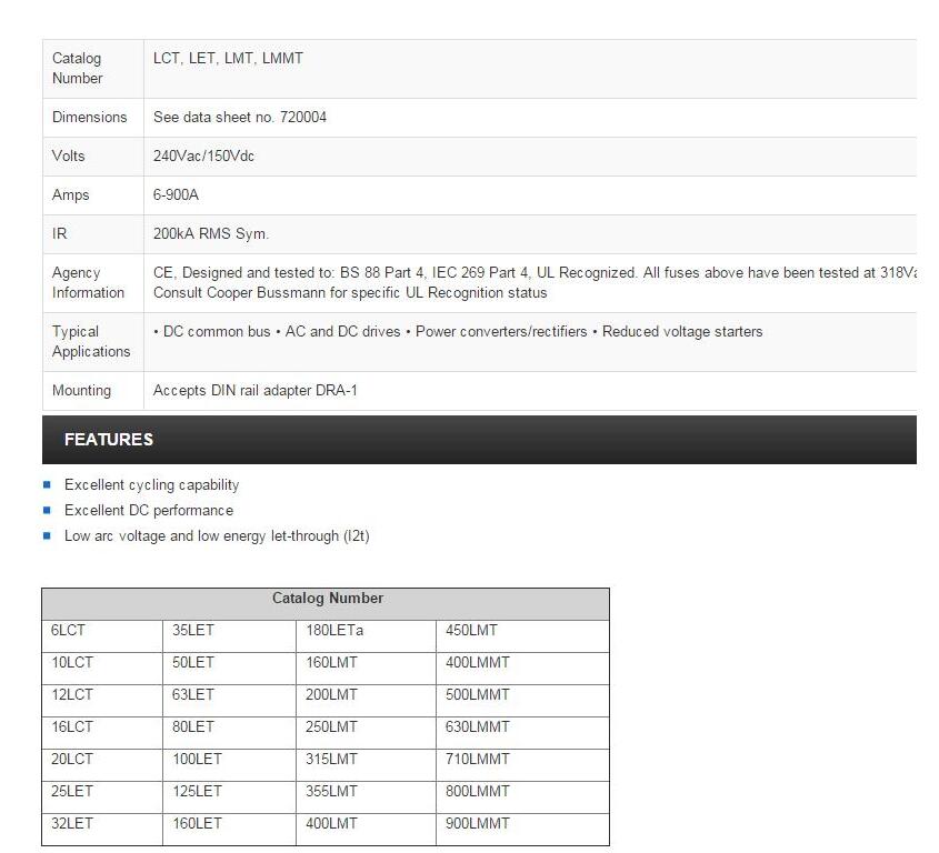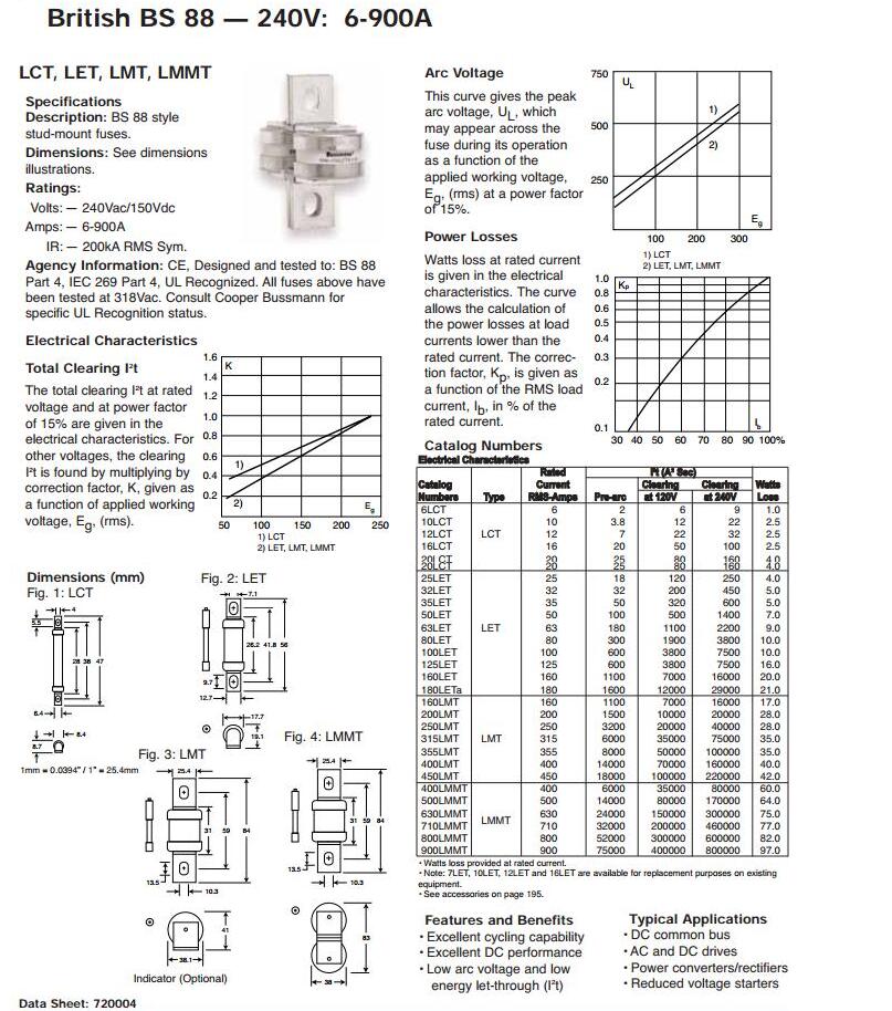 產(chǎn)品名稱: BS 88 — 240V: 6-900A快速熔斷器
