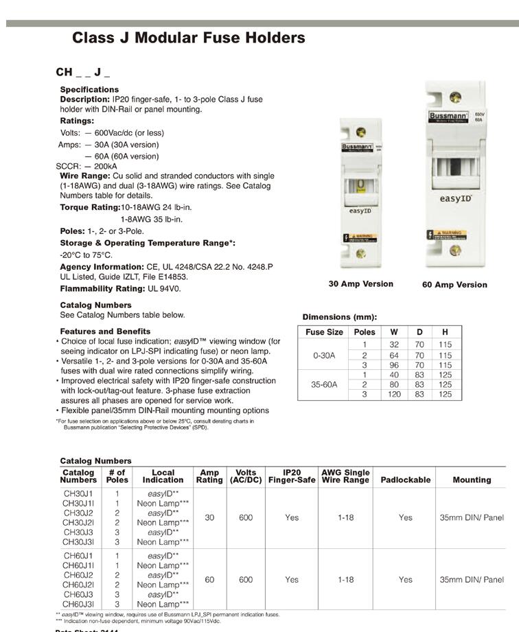 產(chǎn)品名稱: BUSSMANN CHCC1DU 600V熔斷器