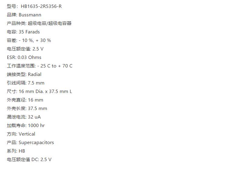 產品名稱: bussmann HB1635-2R5356-R超級電容