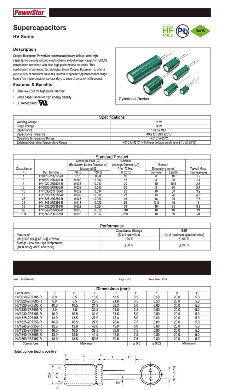 產(chǎn)品名稱: HV1030-2R7106-R 高壓超級(jí)電容器 圓柱綠色超級(jí)電容