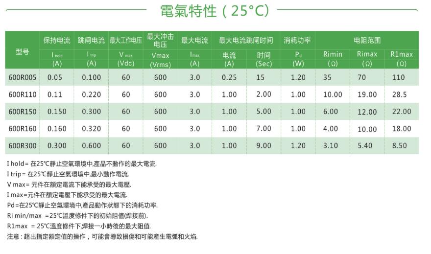 產(chǎn)品名稱: 600V自恢復保險絲