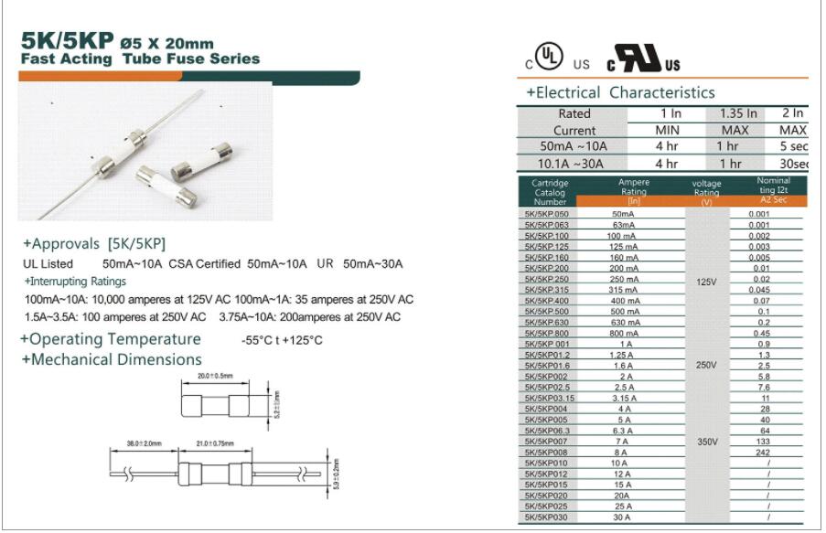 產(chǎn)品名稱: 350V 5*20快斷陶瓷管保險(xiǎn)絲