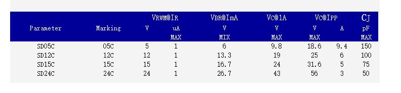簡述: ESD靜電抑制器 SDxxC