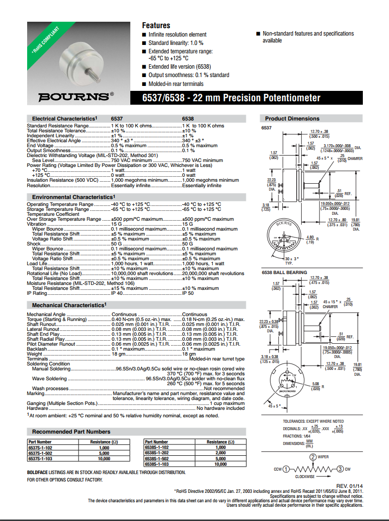 簡(jiǎn)述: BOURNS單轉(zhuǎn)型精密電位器6537/6538