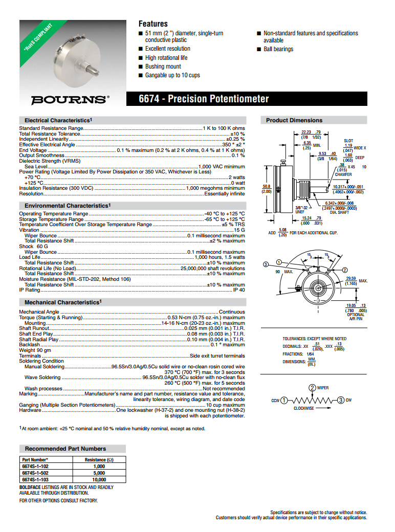 簡述: BOURNS單轉(zhuǎn)型精密電位器6674