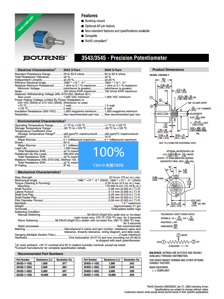 簡述: BOURNS多轉(zhuǎn)型精密電位器3543/3545