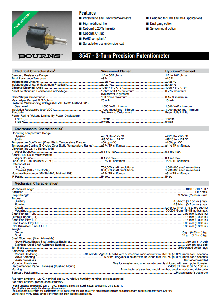 簡述: BOURNS多轉(zhuǎn)型精密電位器3547