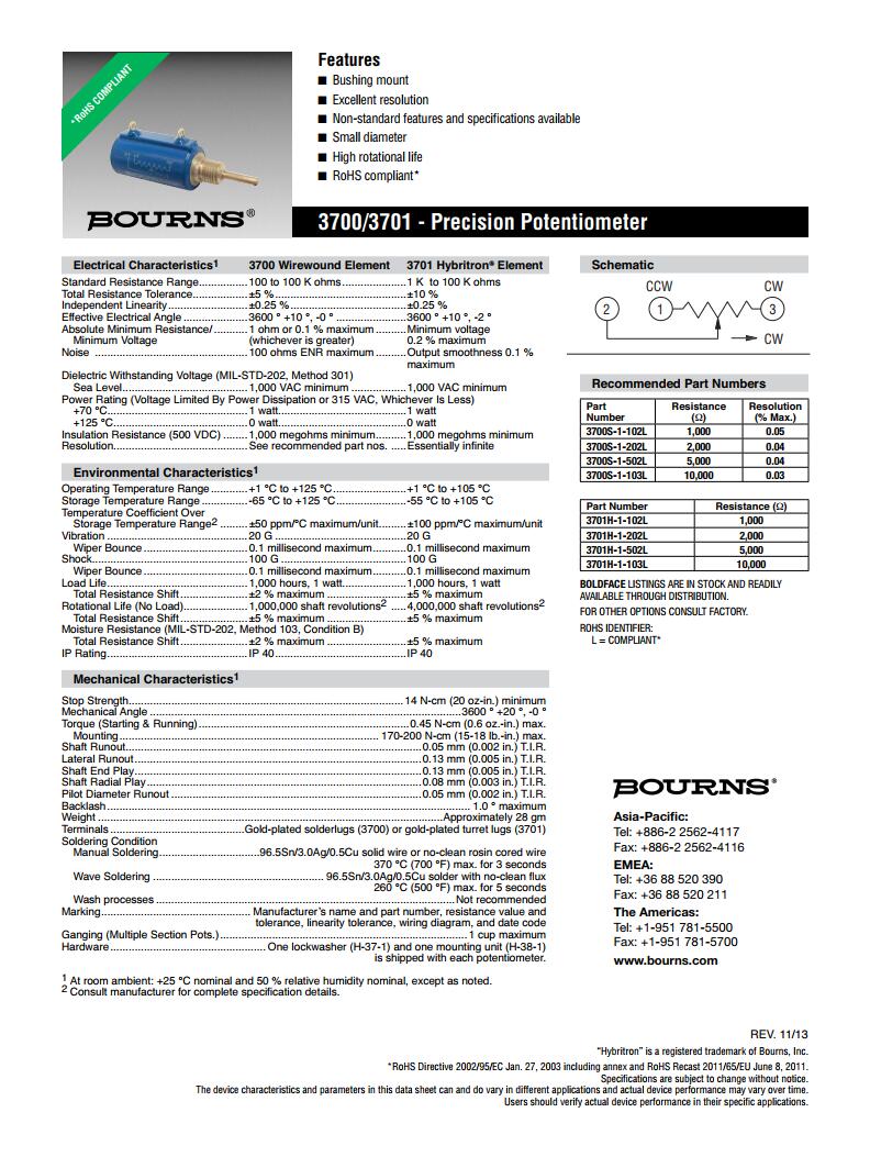 產(chǎn)品名稱: BOURNS多轉(zhuǎn)型精密電位器3700/3701