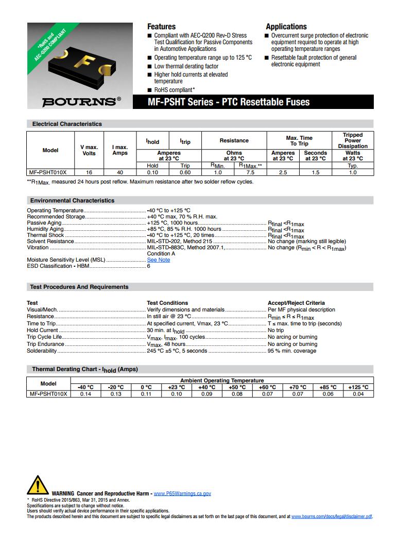 產(chǎn)品名稱: BOURNS 車規(guī)保險(xiǎn)絲 MF-PSHT AEC-Q200認(rèn)證