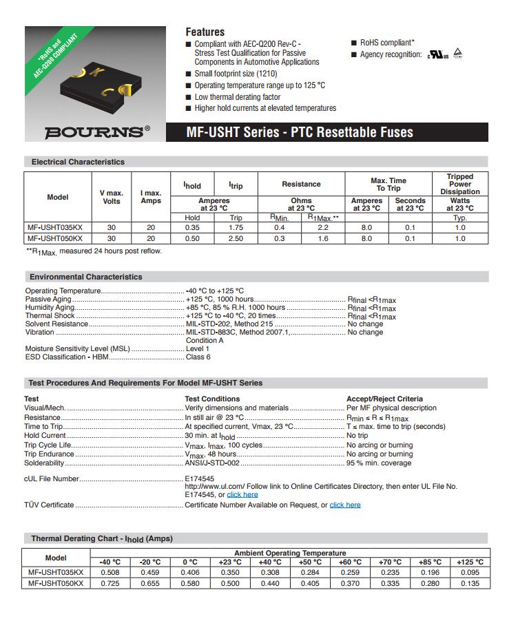 產(chǎn)品名稱: BOURNS 車規(guī)保險(xiǎn)絲 MF-USHT AEC-Q200認(rèn)證
