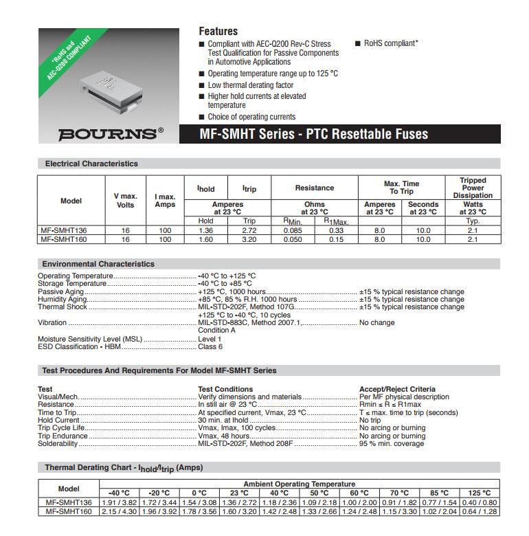產(chǎn)品名稱: BOURNS 車(chē)規(guī)保險(xiǎn)絲 MF-SM AEC-Q200認(rèn)證