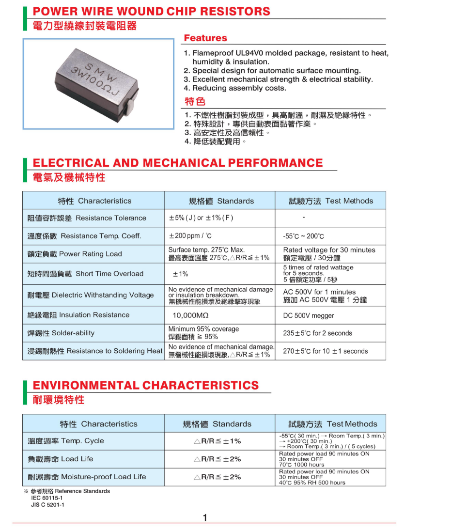 產(chǎn)品名稱: SMW 電力型繞線封裝電阻器