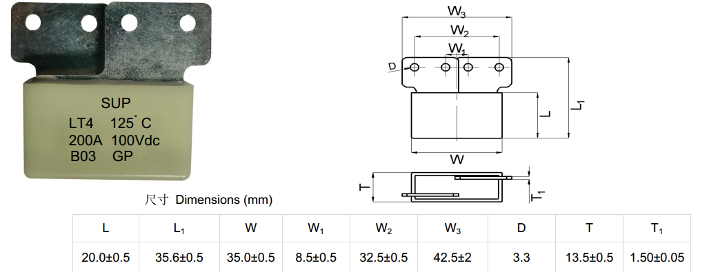 產(chǎn)品名稱: 200A100V 溫度保險絲
