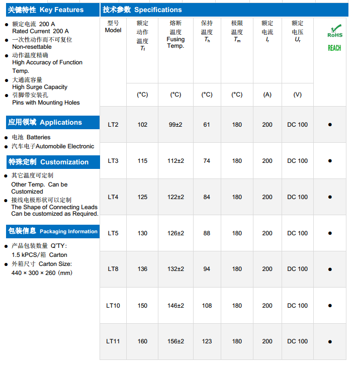 簡述: 200A100V 溫度保險絲,陶瓷溫度保險絲,電池溫度保險絲,汽車電子溫度保險絲,200A溫度保險絲,大電流溫度保險絲
