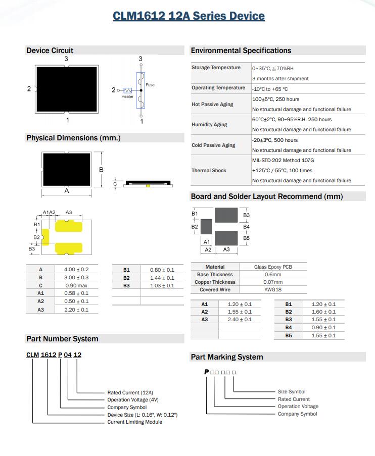 產(chǎn)品名稱: CLM1612 12A Series Device 三端保險絲