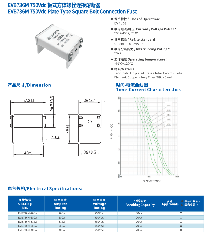 產(chǎn)品名稱: 板式方體螺栓連接熔斷器EVB736M 750V Type Spuare Boit Connertion Fuse