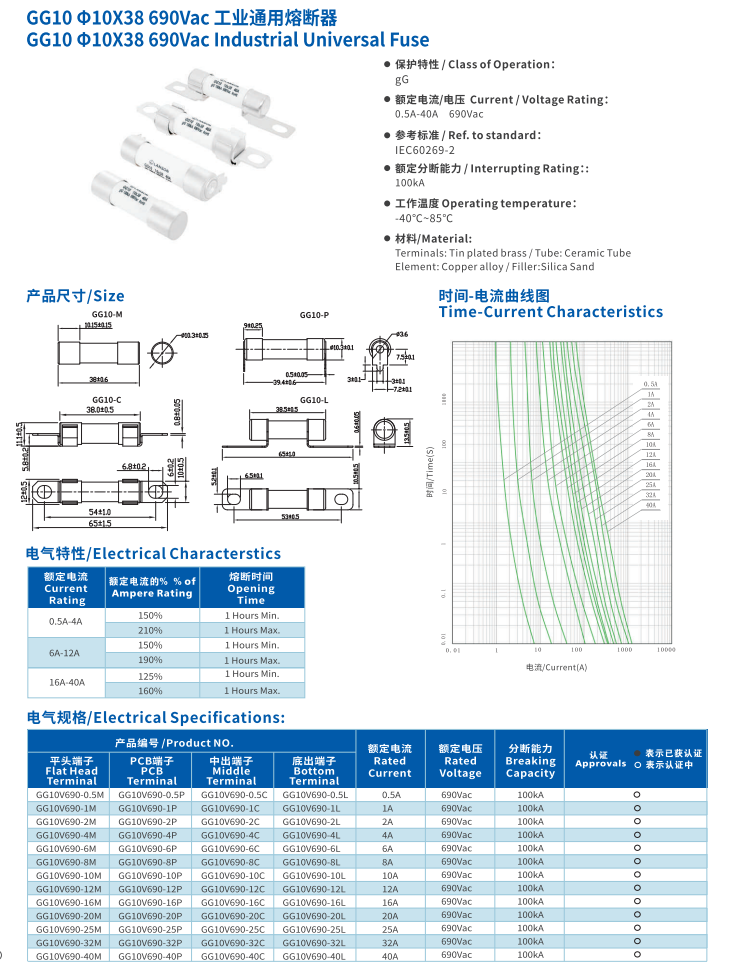 簡述: 工業(yè)通用熔斷器CG10 10*38 690VAC INDUSTRIAL Universal Fuse